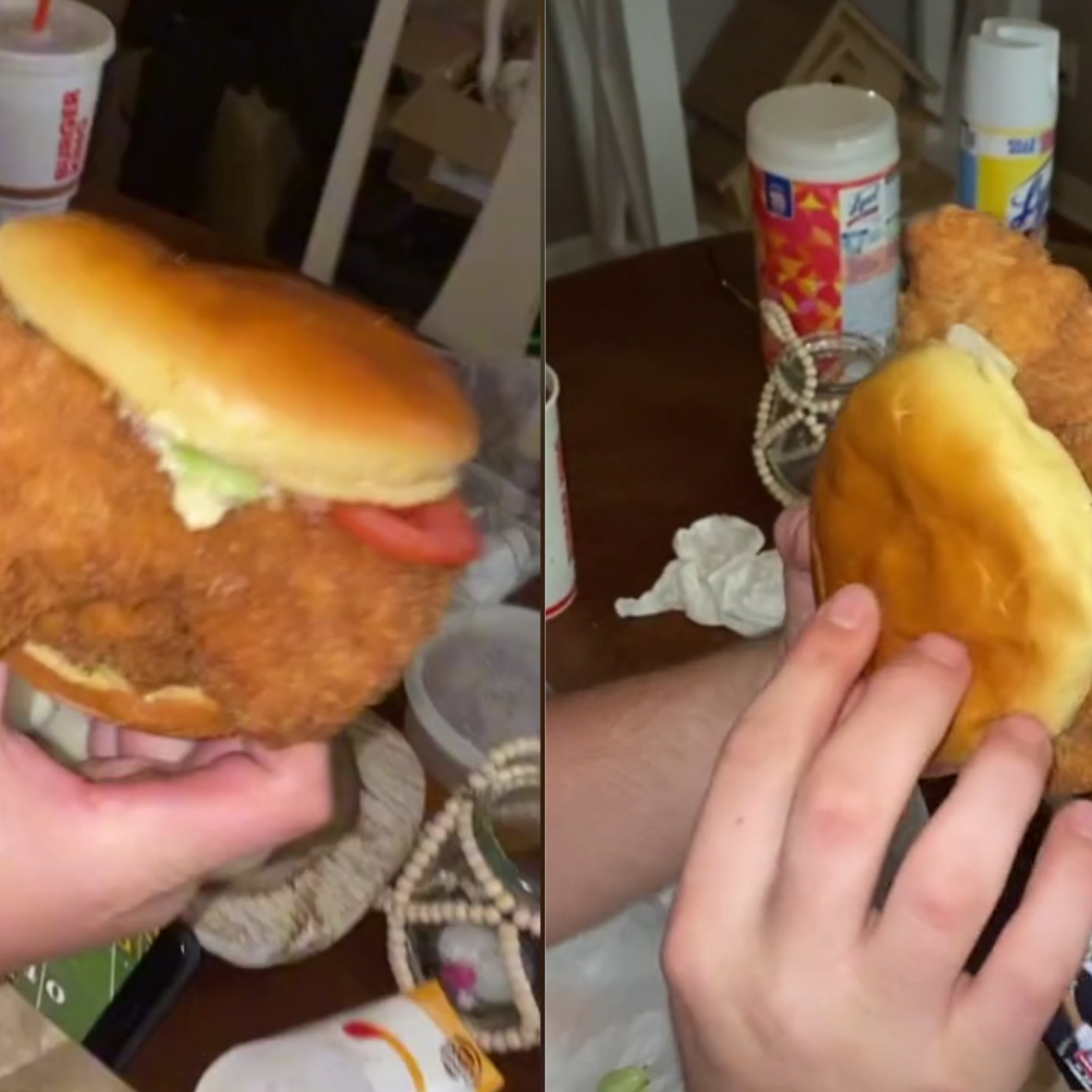 Man S Freakishly Large Burger King Chicken Burger Stuns Fast Food Fans